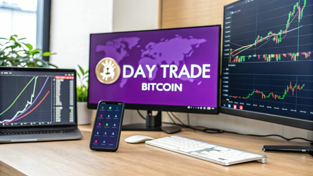 The daily grind for a Bitcoin day trader is all about opening and closing multiple positions within a single session. The objective isn't to hit one massive home run. Instead, it's about stacking up small, consistent gains that accumulate over time. This is a game of high discipline and sharp strategy, not blind luck.