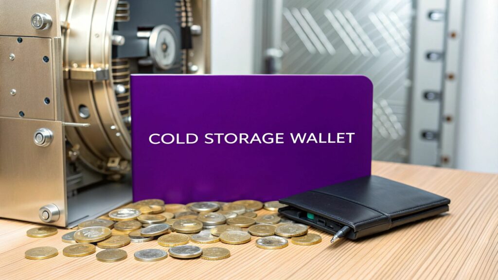 At its core, a cold storage wallet is a way to secure your crypto by keeping your private keys entirely offline, completely cut off from the internet. You can think of it as a Fort Knox for your digital assets, making them unreachable to online hackers. The whole point is to create an "air gap"—a physical dead-end between your crypto keys and the online world.